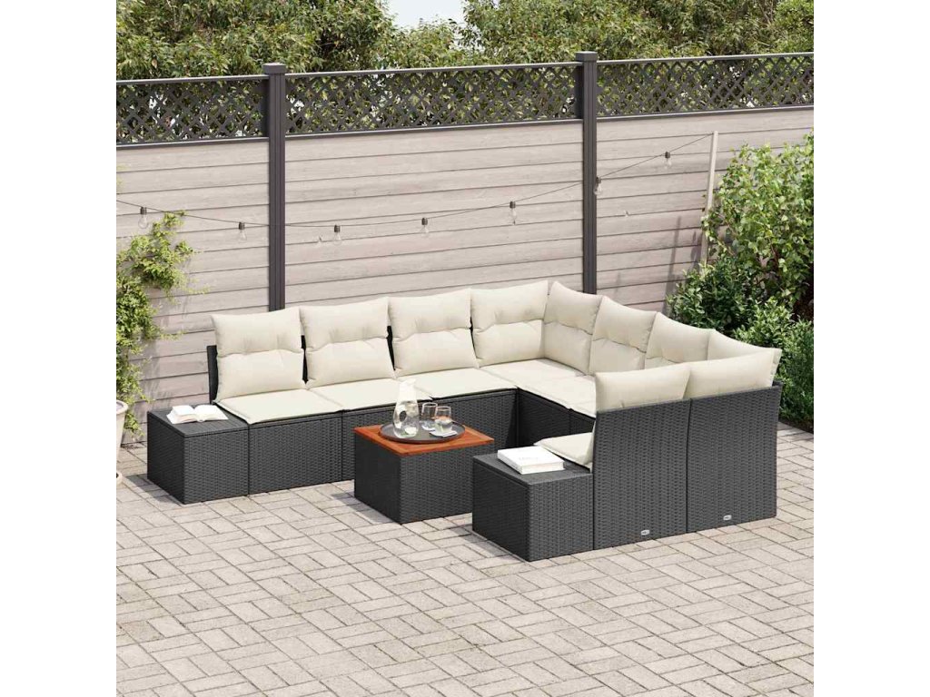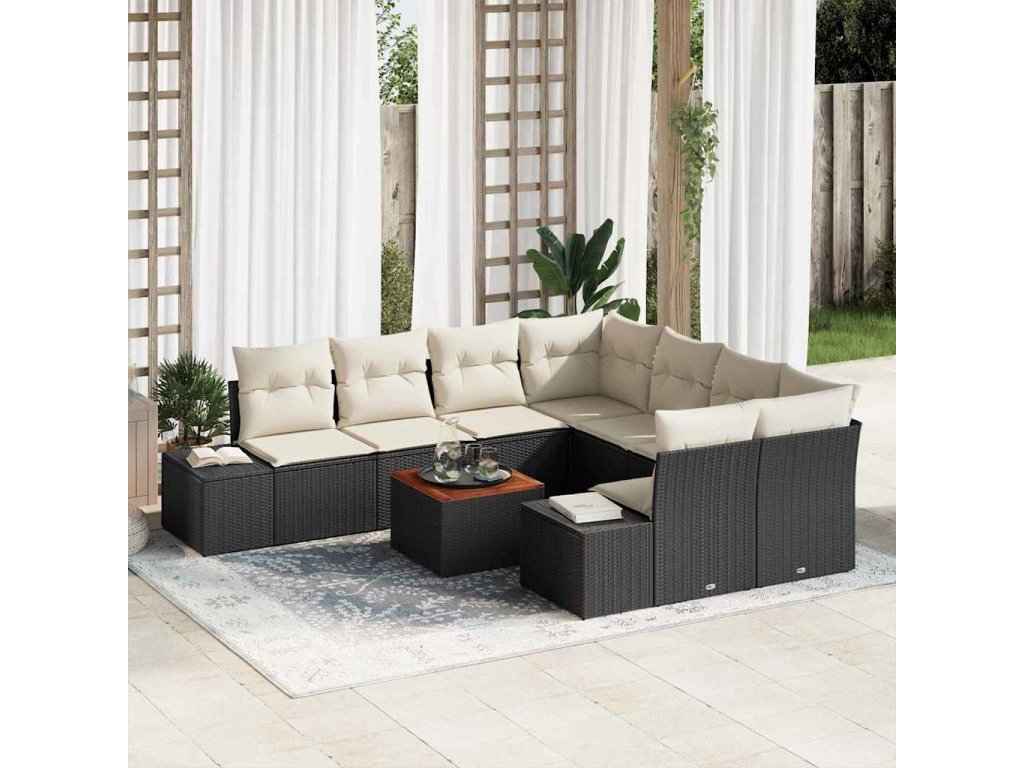 Multidom Súprava záhradných pohoviek s vankúšom 9 pcs Čierna polyratan