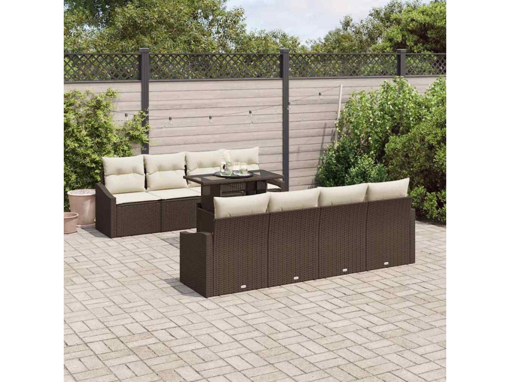 Multidom Súprava záhradných pohoviek s vankúšom 9 pcs Hnedá polyratan