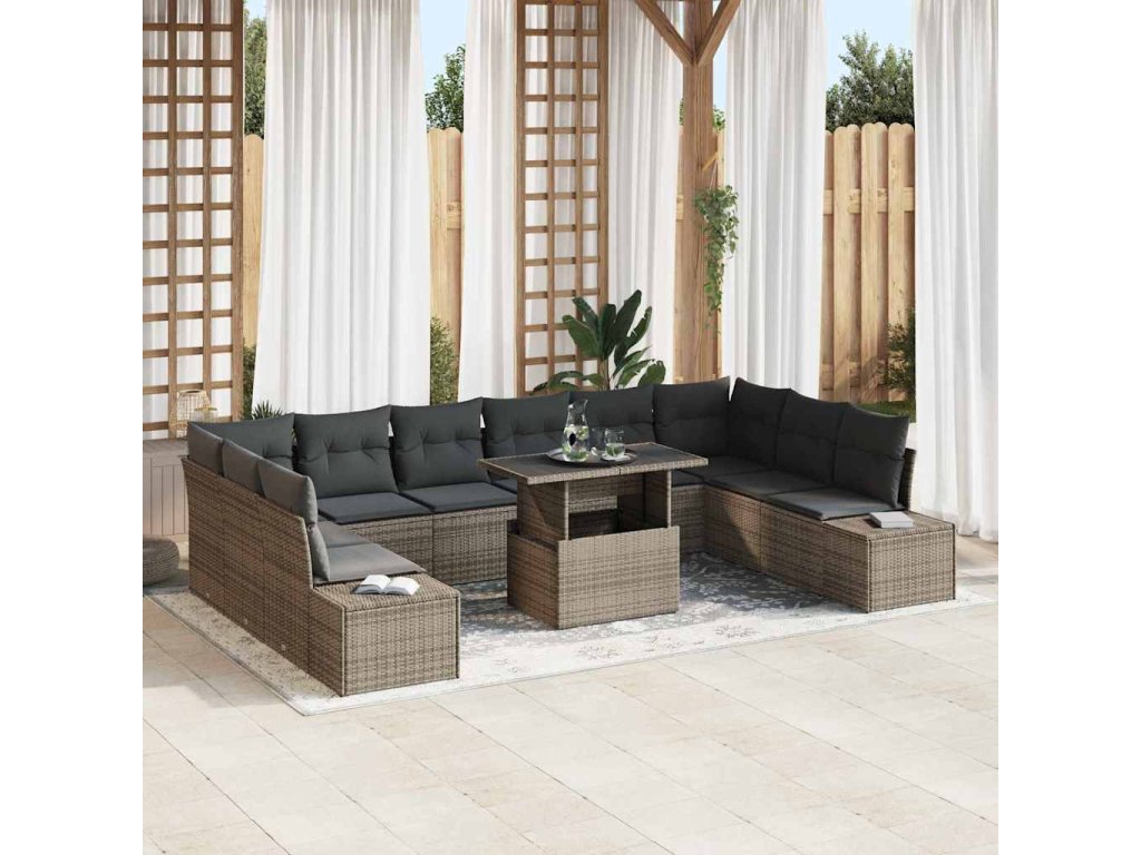 Multidom Súprava záhradných pohoviek s vankúšom s úložiskom 11 pcs Sivá