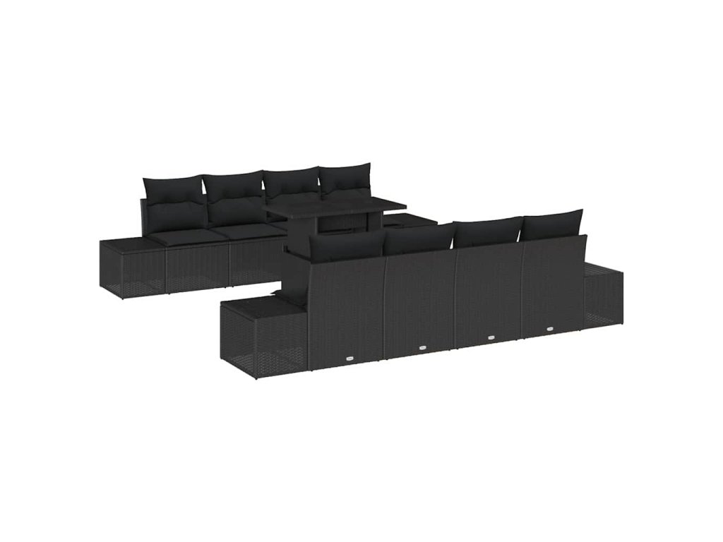 Multidom Súprava záhradných pohoviek s vankúšom s úložiskom 9 pcs Čierna