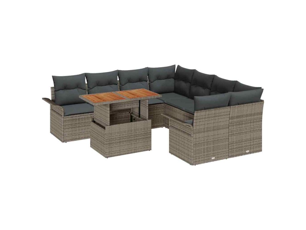 • Obsah balenia: Získaš dve lakťové pohovky, dve rohové sedadlá, štyri stredné sedadlá a praktický stôl s úložiskom. Polyratanové operadlá a lakťové opierky sú pohodlné, zatiaľ čo akáciové stolíky sú ideálne na nápoje a dekorácie. Úložné možnosti udržiavajú vonkajší priestor uprataný a spĺňajú všetky potrebné potreby.