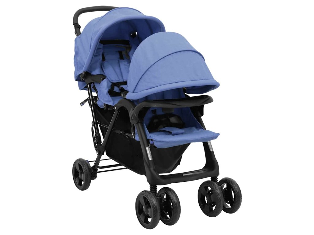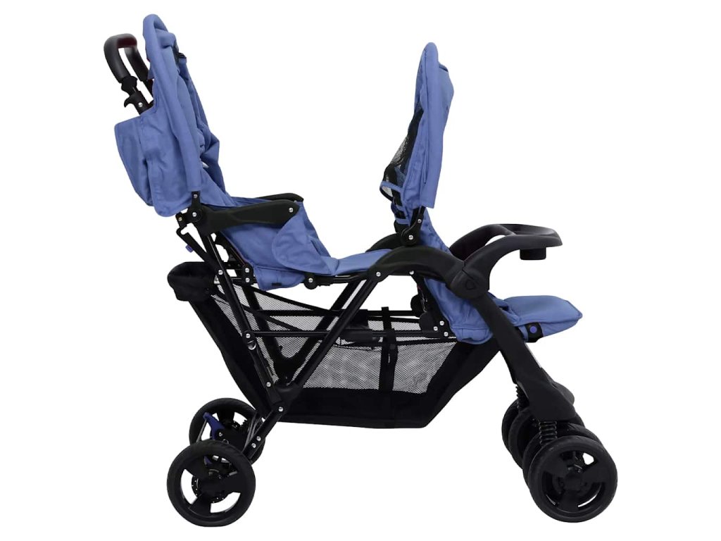 Multidom Tandemový kočík pre dvojičky modrý oceľový