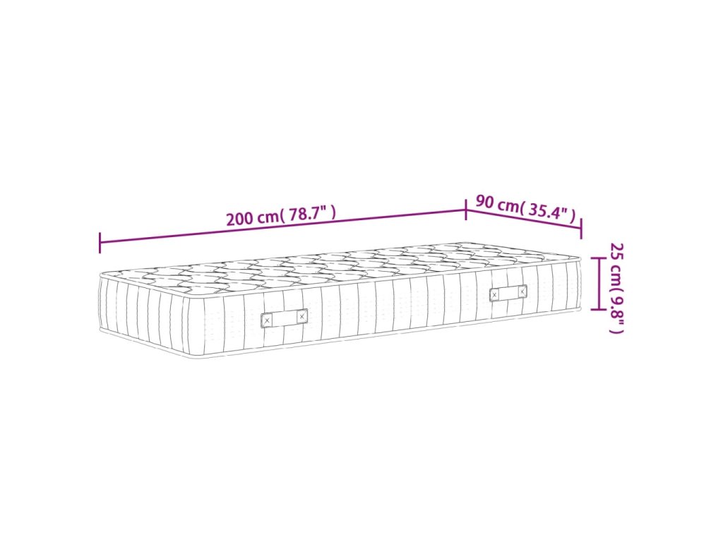 - Rozmery: 90 x 200 x 25 cm (D x Š x V)