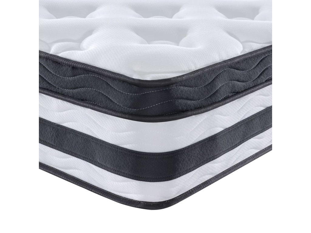 - Zvýšený komfort: Pružinový matrac je navrhnutý s viacerými vrstvami, vrátane penovej vrstvy, izolačnej podložky a pružinovej vrstvy. Táto kombinácia poskytuje mäkký až stredne mäkký pocit a pohodlie ako v kolíske pre všetky polohy spánku. Matrac navyše účinne pohlcuje hluk a vibrácie spôsobené otáčaním, čím zaisťuje pokojný a ničím nerušený spánok.