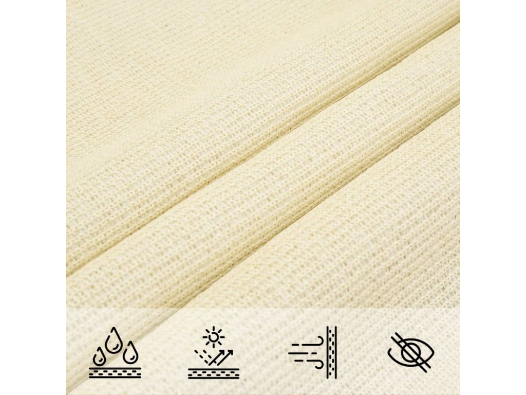 Slnečný plachta, vyrobená zo 100% HDPE (polyetylén s vysokou hustotou), vás chráni pred priamym slnečným žiarením, umožňuje dostatočný prúd vzduchu a je priepustná pre vodu. HDPE je špeciálne upravený, takže je odolný proti plesniam a UV žiareniu.