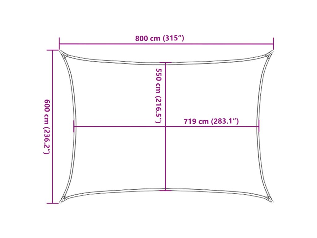 Slnečné plátno, vyrobené zo 100 % HDPE (polyetylén s vysokou hustotou), vás chráni pred priamym slnečným žiarením, umožňuje dostatočný prietok vzduchu a je priepustné pre vodu. HDPE je špeciálne ošetrené, takže je odolné proti plesniam a UV žiareniu. Slnečné tienidlo sa ľahko montuje pomocou nerezových upevňovacích prvkov v každom rohu a priložených lán.