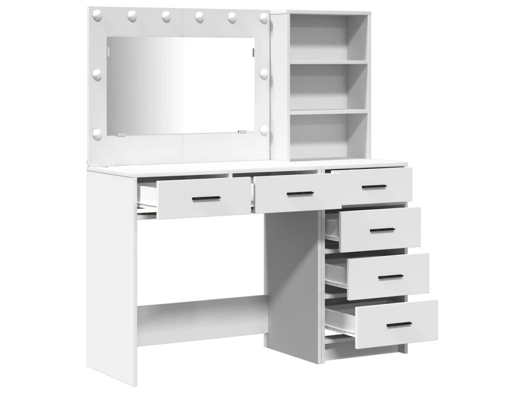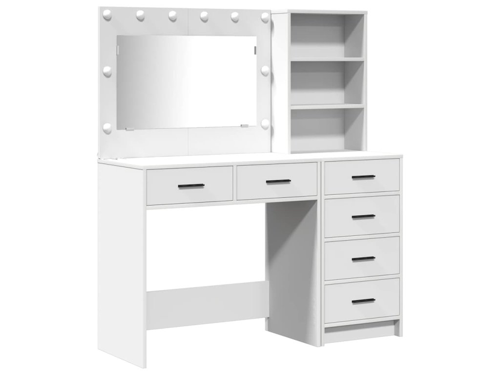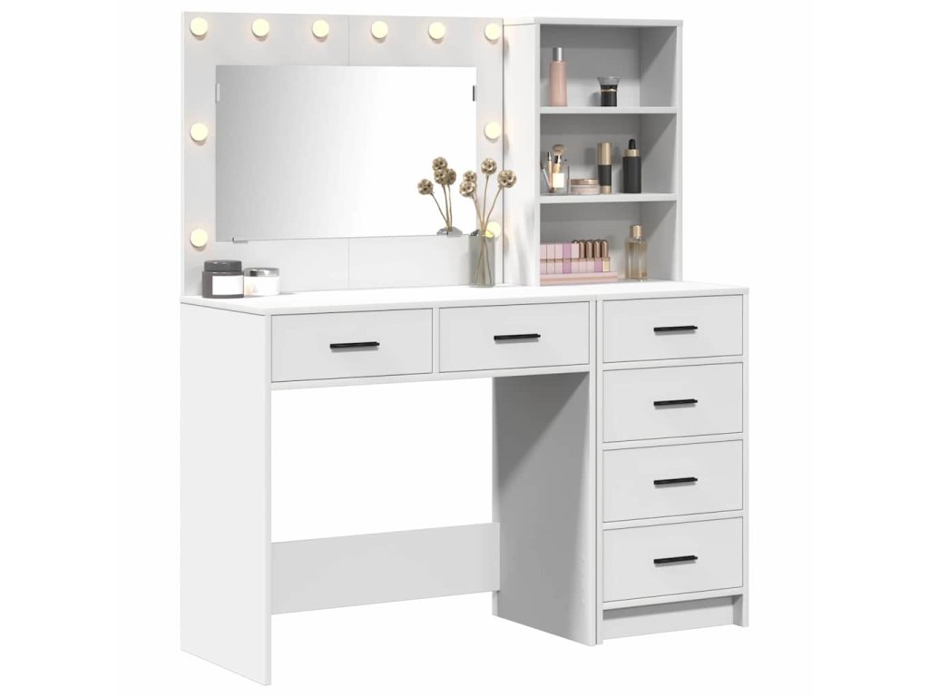 - Funkcie / Účel / Dizajn: S moderným obdĺžnikovým tvarom sa tento stôl skvele hodí do tvojej spálne. Jeho jednoduchý dizajn zvyšuje praktickosť a efektívne využíva priestor. Toaletný stolík má množstvo priehradiek, čo ho robí ideálnym pre tých, ktorí milujú poriadok.
