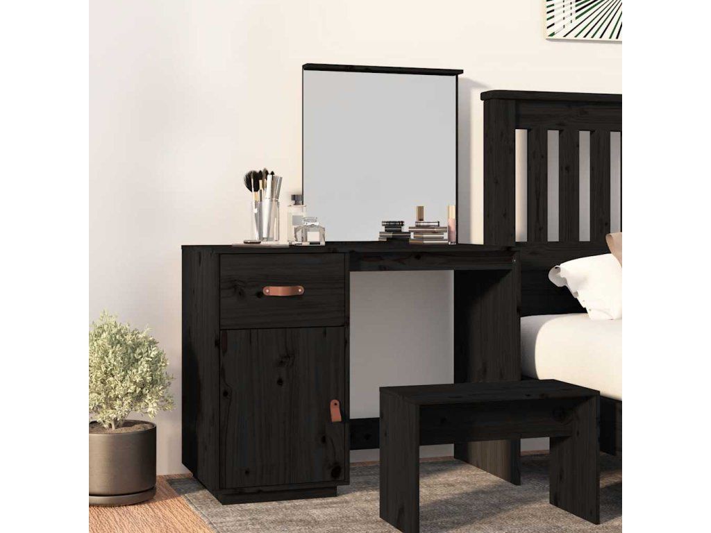 Multidom Toaletný stolík čierny 95x50x134 cm masívne borovicové drevo