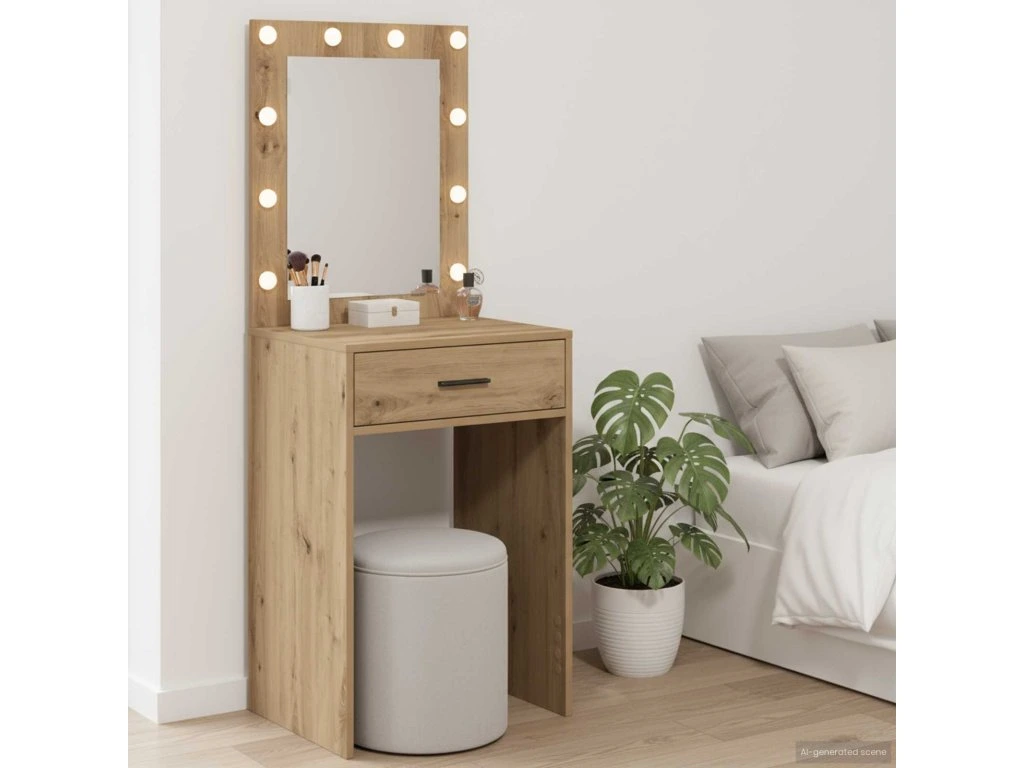 - Zahrnuté komponenty: Stolík obsahuje rovinné zrkadlo so svetlami a zásuvkami, čo zabezpečuje praktickosť. Zrkadlo ponúka skvelý odraz pre presné úpravy a svetlá poskytujú ideálne osvetlenie. Zásuvky sú užitočné na uloženie osobných vecí a zvyšujú praktickosť.