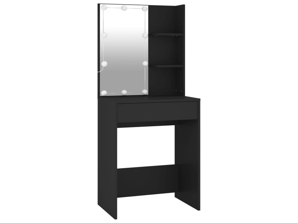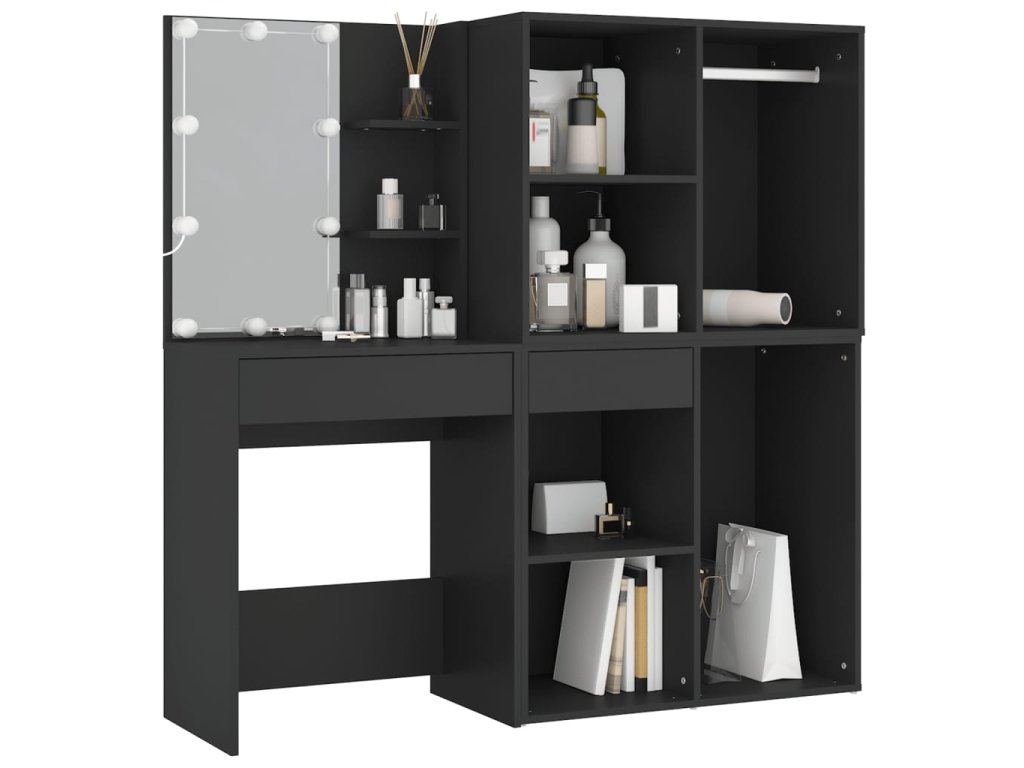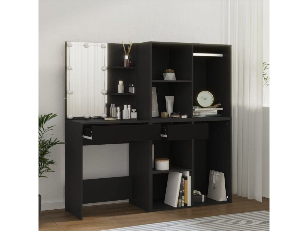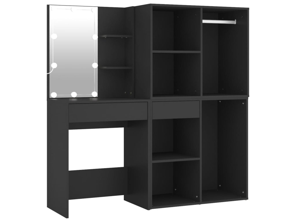 Multidom Toaletný stolík s LED a skrinkami čierny kompozitné drevo