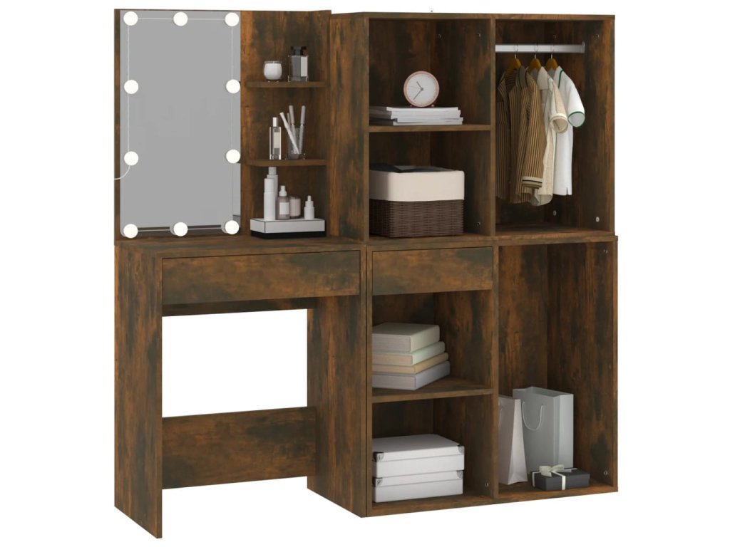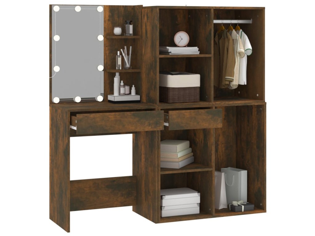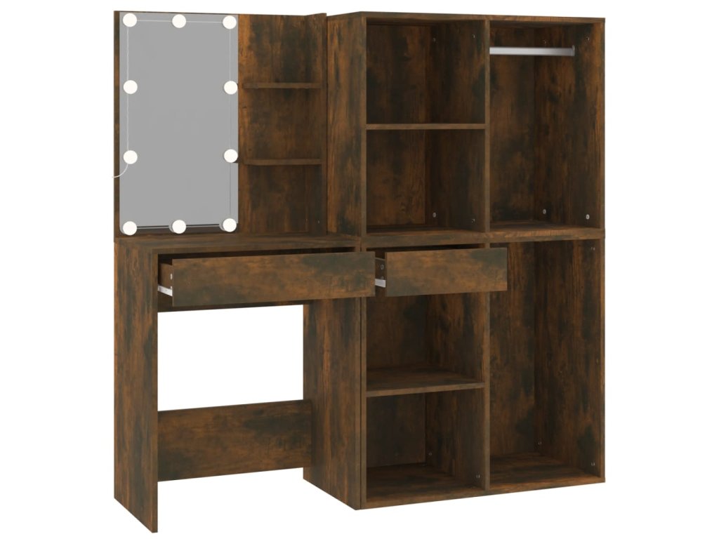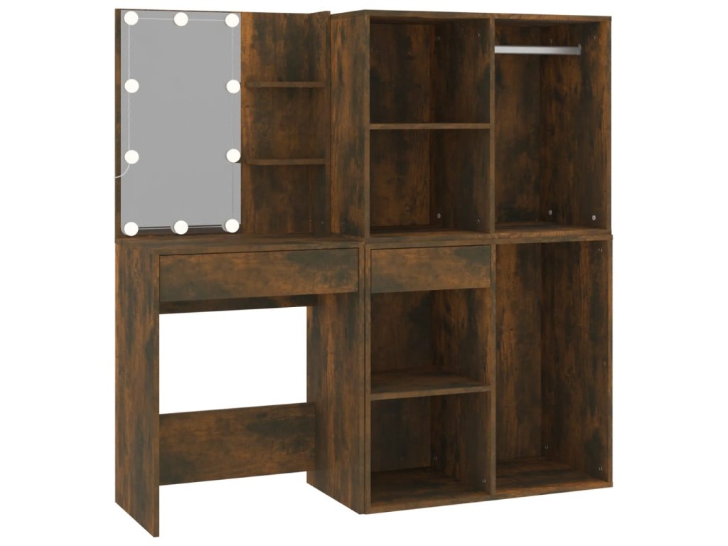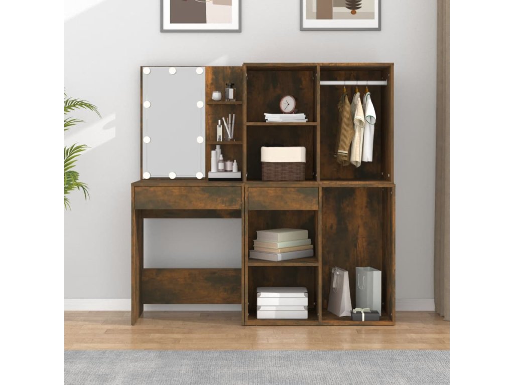 Multidom Toaletný stolík s LED a skrinkami dymový dub spracované drevo