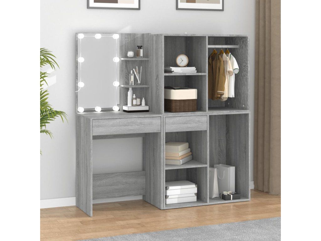 Multidom Toaletný stolík s LED a skrinkami sivý sonoma spracované drevo