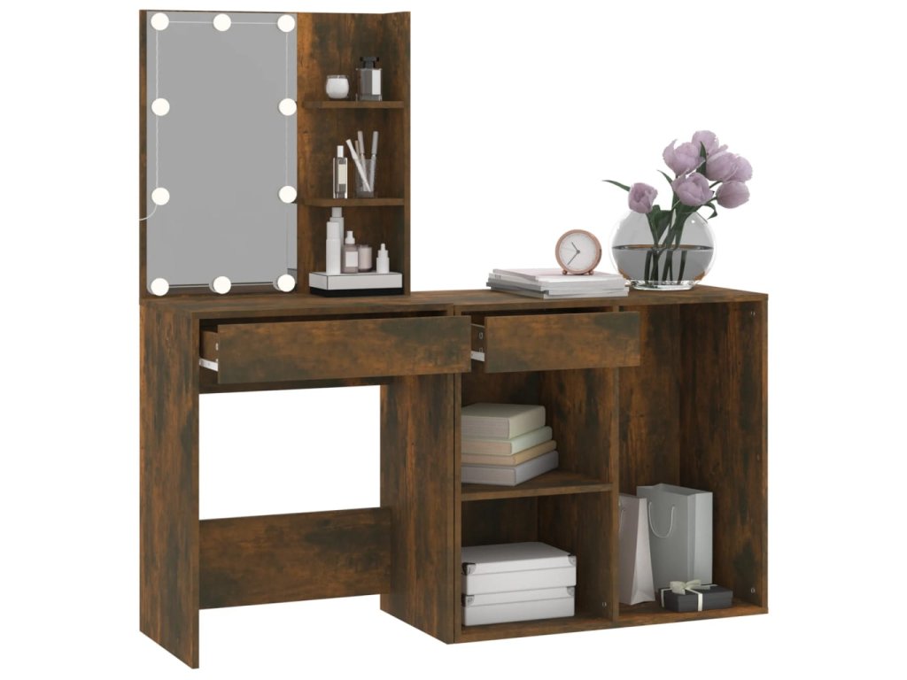 Multidom Toaletný stolík s LED a skrinkou dymový dub spracované drevo