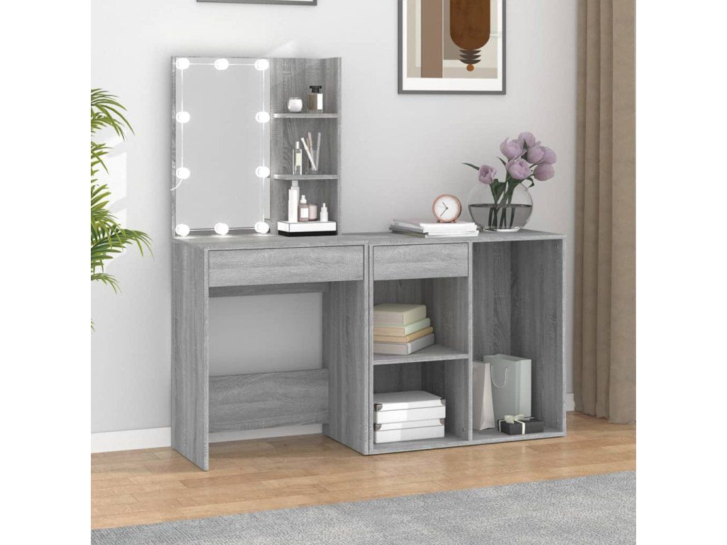 Multidom Toaletný stolík s LED a skrinkou sivý sonoma spracované drevo