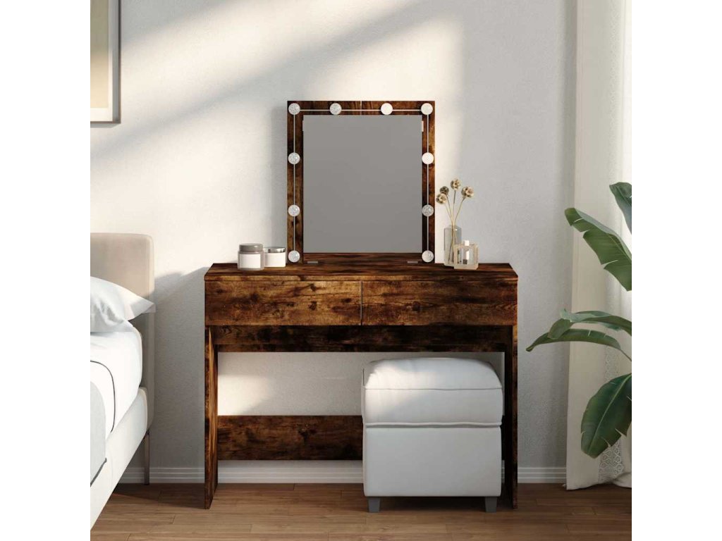 Multidom Toaletný stolík s LED dymový dub 100x40x130 cm