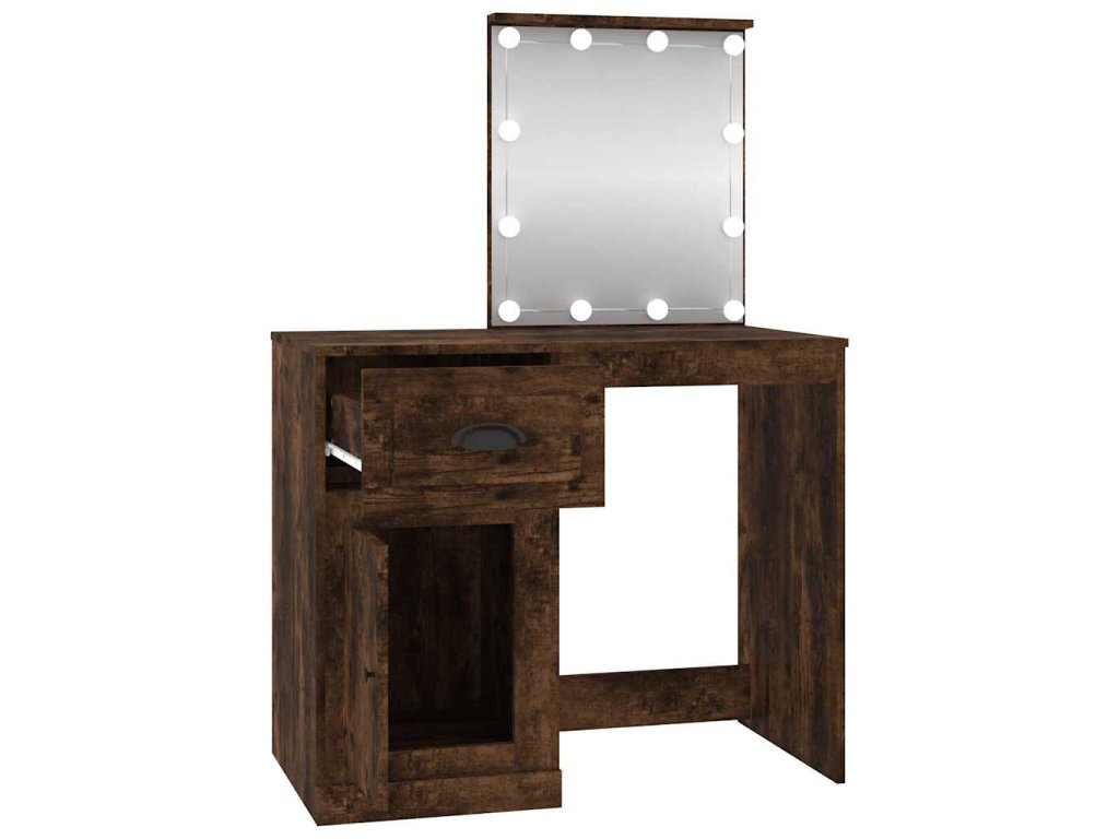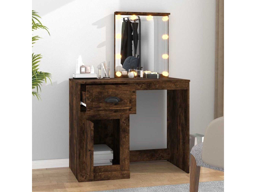 Multidom Toaletný stolík s LED dymový dub 90x50x132,5cm kompozitné drevo
