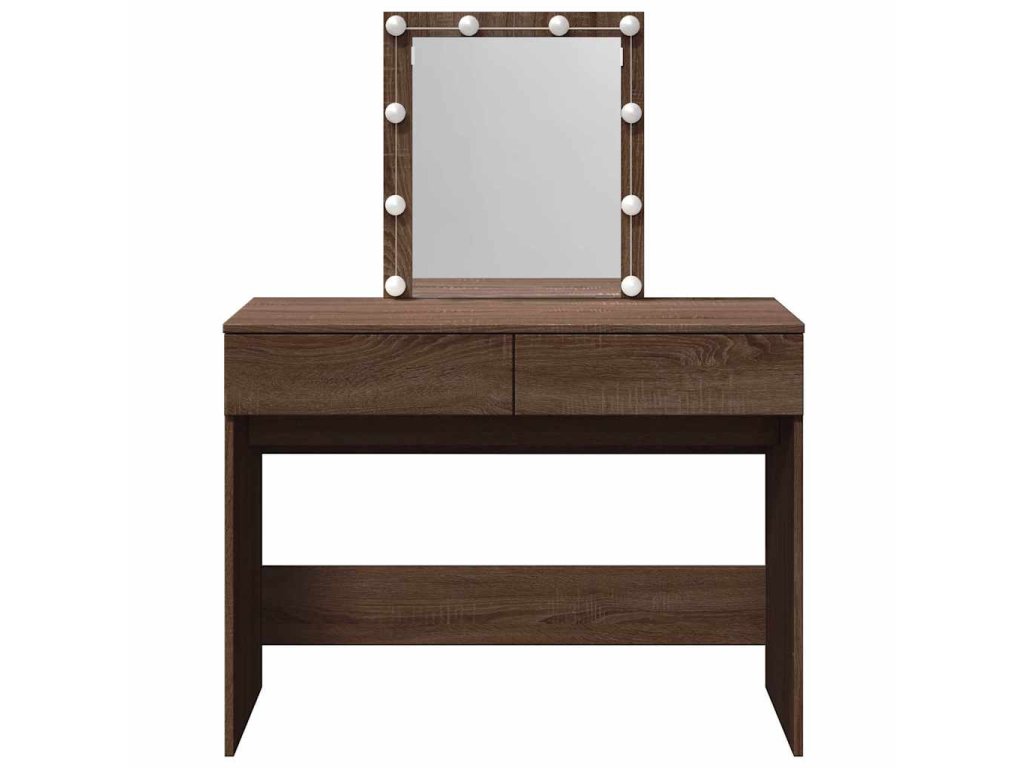 Multidom Toaletný stolík s LED hnedý dub 100x40x130 cm