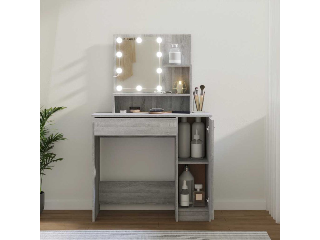 Multidom Toaletný stolík s LED sivý dub sonoma 86,5x35x136 cm