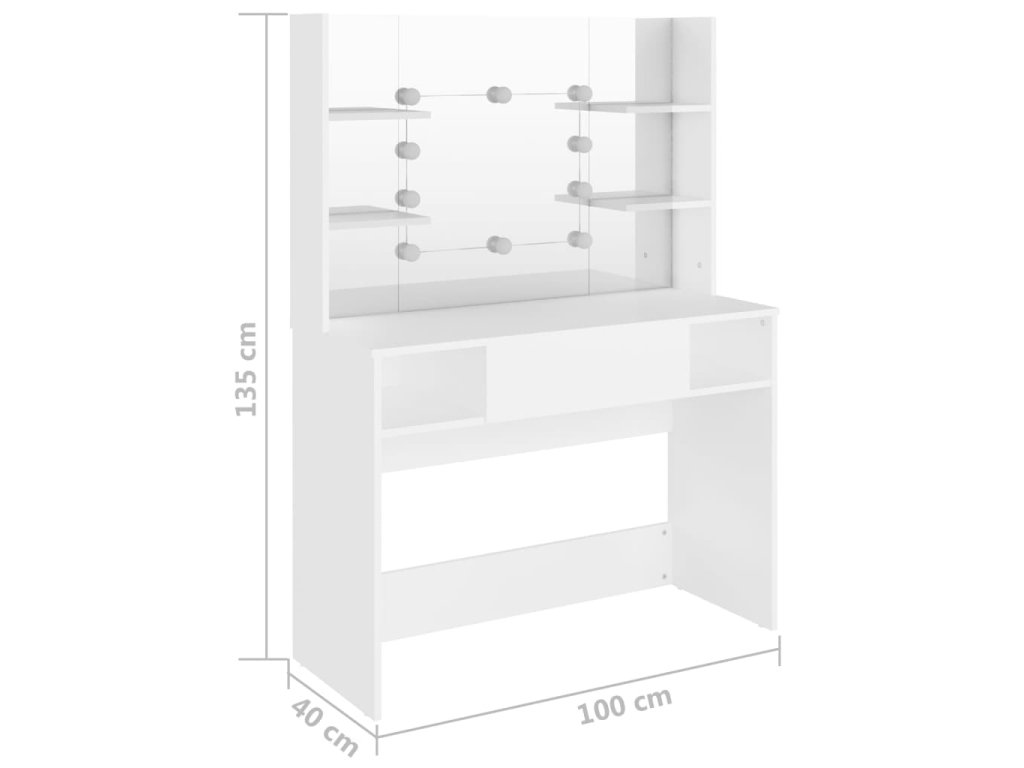Multidom Toaletný stolík s LED svetlami 100x40x135 cm MDF biely