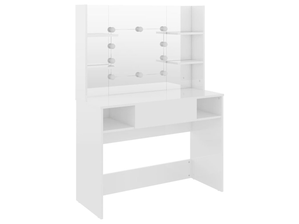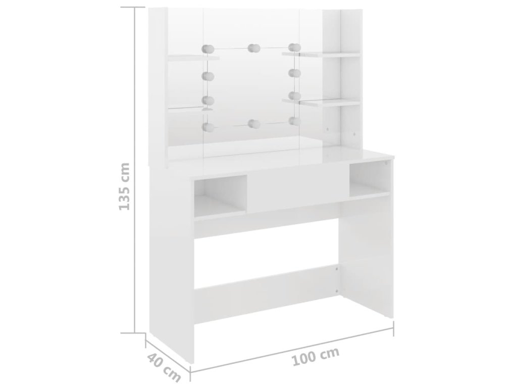 Multidom Toaletný stolík s LED svetlami 100x40x135 cm MDF lesklý biely