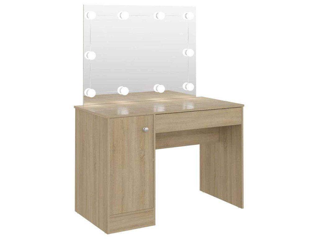 Multidom Toaletný stolík s LED svetlami 110x55x145 cm MDF dubový