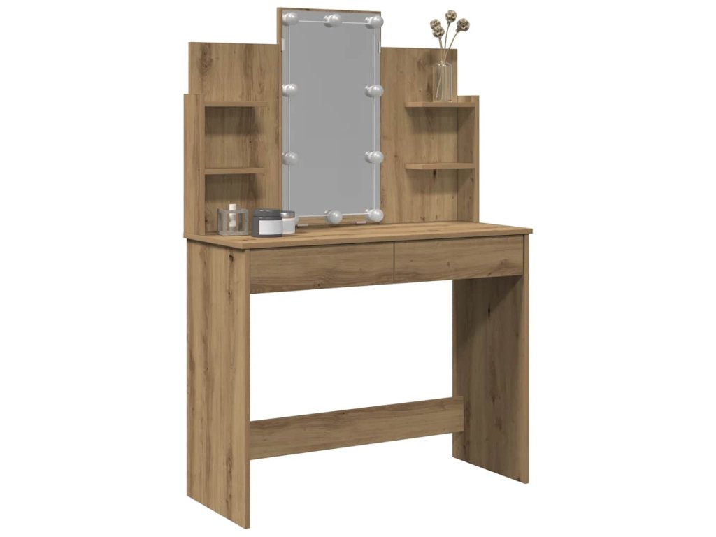 Multidom Toaletný stolík s LED svetlami dub artisan 96x40x142 cm