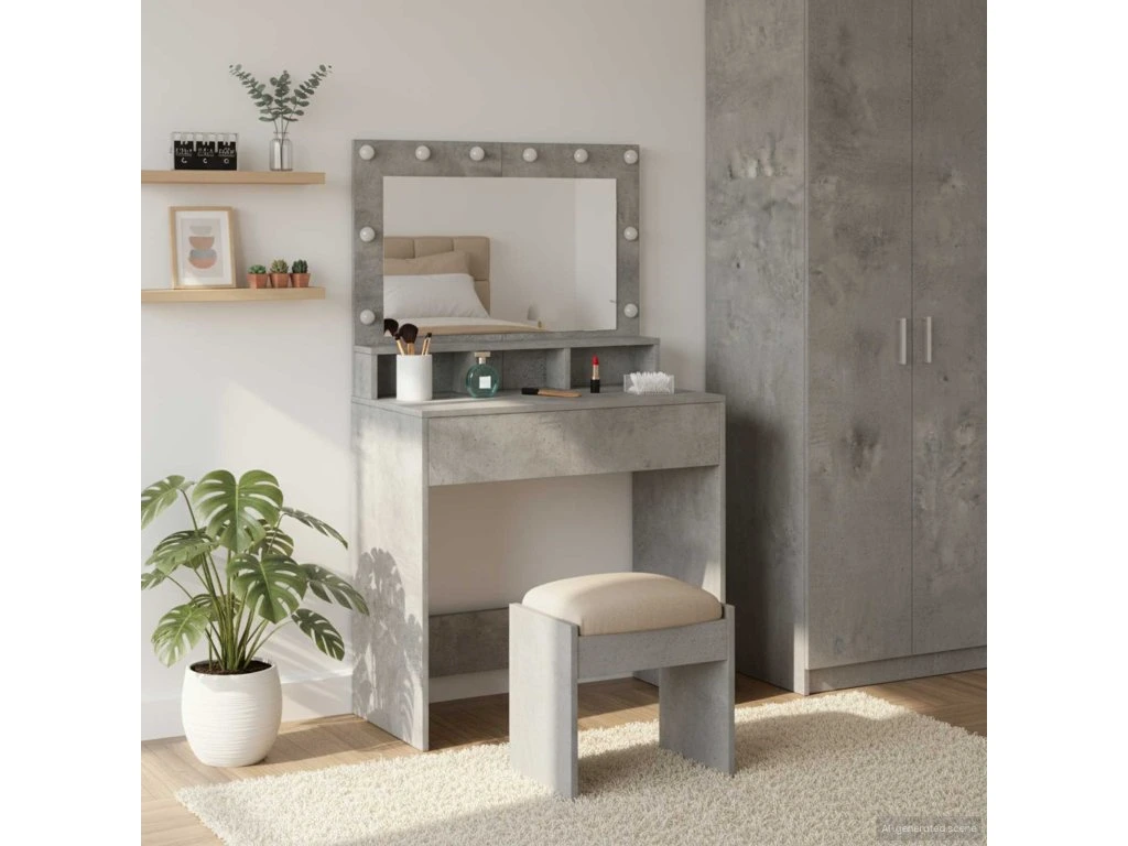 - Odporúčané použitie: Tento toaletný stolík je ideálny na osobnú úpravu a make-up do spálne. Jeho moderný dizajn sa bez problémov hodí do rôznych štýlových interiérov, takže je perfektným centrom pre všetky stylingové potreby.