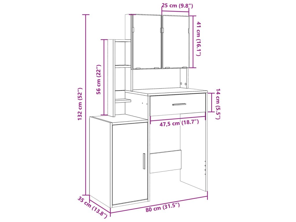 Multidom Toaletný stolík so skrinkou dymový dub 80x35x132 cm