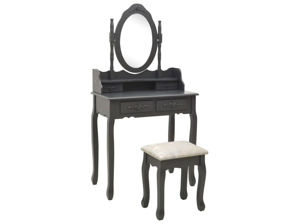 Multidom Toaletný stolík so stoličkou, sivý 75x69x140 cm, paulovnia