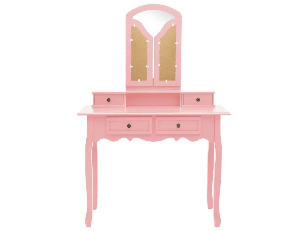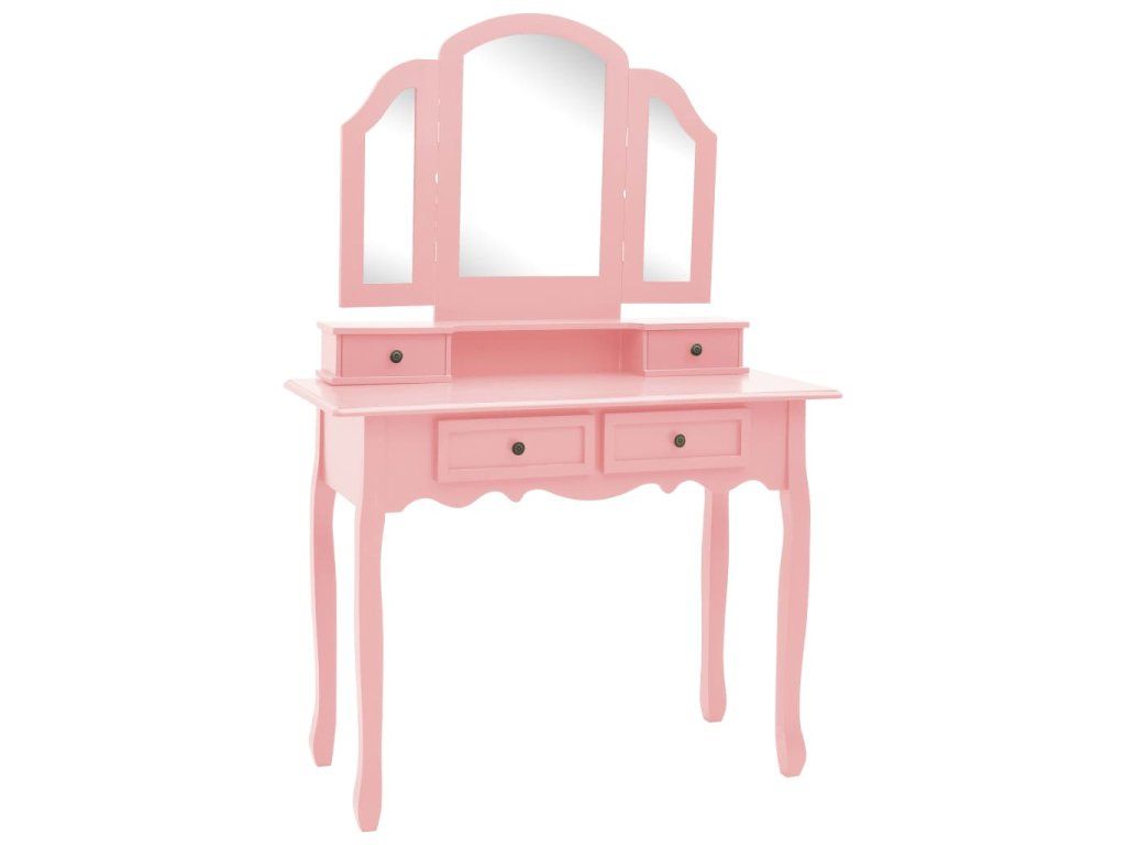 Multidom Toaletný stolík so stoličkou ružový 100x40x146 cm drevo paulovnie