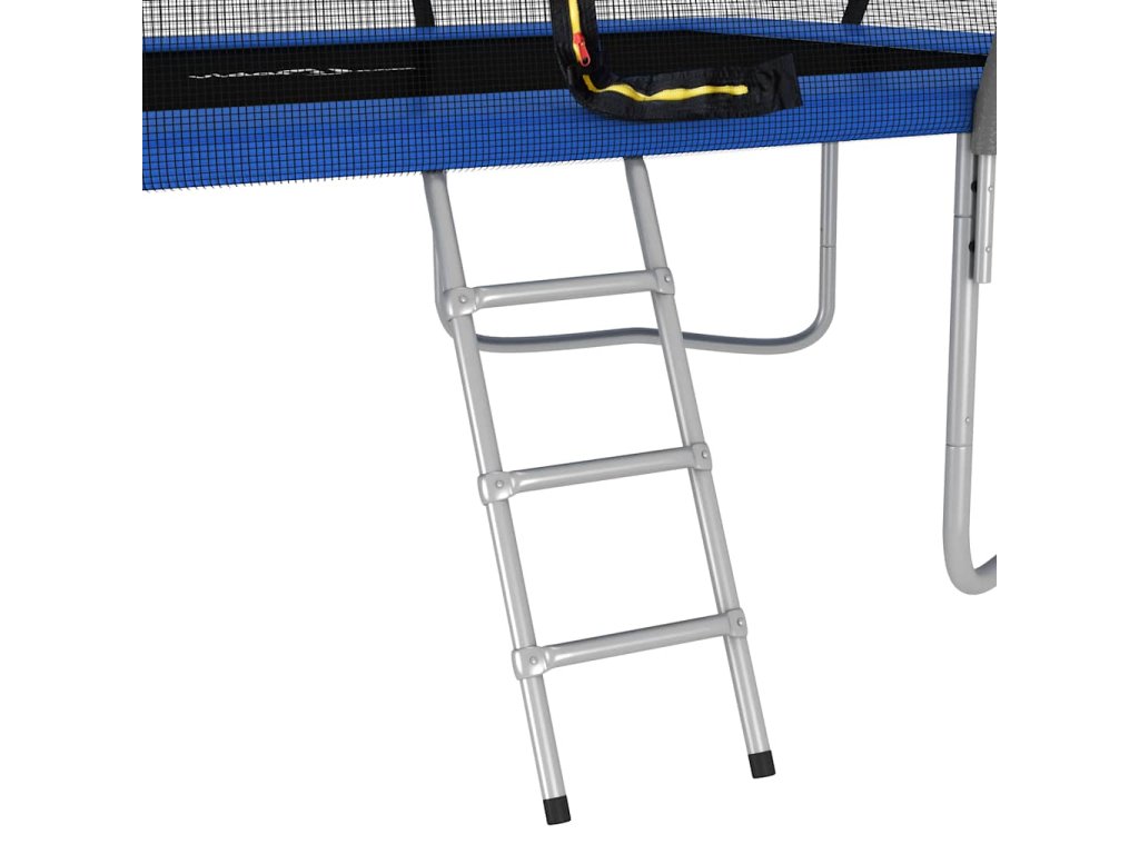 Táto kombinácia odrážadiel má dvojstupňový rebrík, ktorý umožňuje vašim deťom ľahko nastupovať a vystupovať z trampolíny. Sieť sa zapína na zips, ktorý zabraňuje pádu detí z trampolíny. Pláštenka navyše chráni trampolínu pred dlhším používaním. Montáž je jednoduchá.