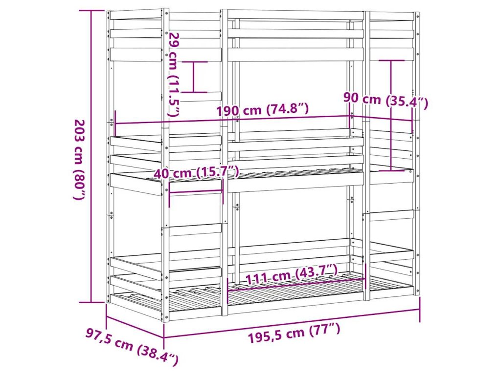 Táto drevená trojitá poschodová posteľ je elegantná a funkčná, vďaka čomu z nej bude perfektný doplnok do každej miestnosti!