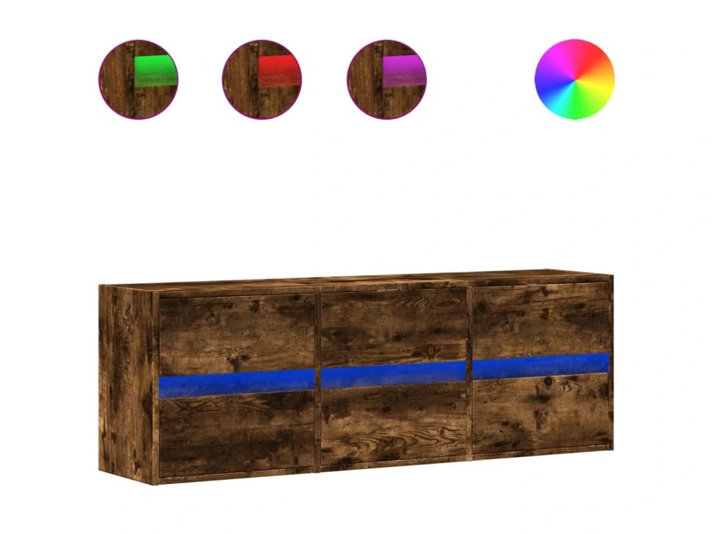 Multidom TV nástenná skrinka s LED svetlami dymový dub 130x31x45 cm