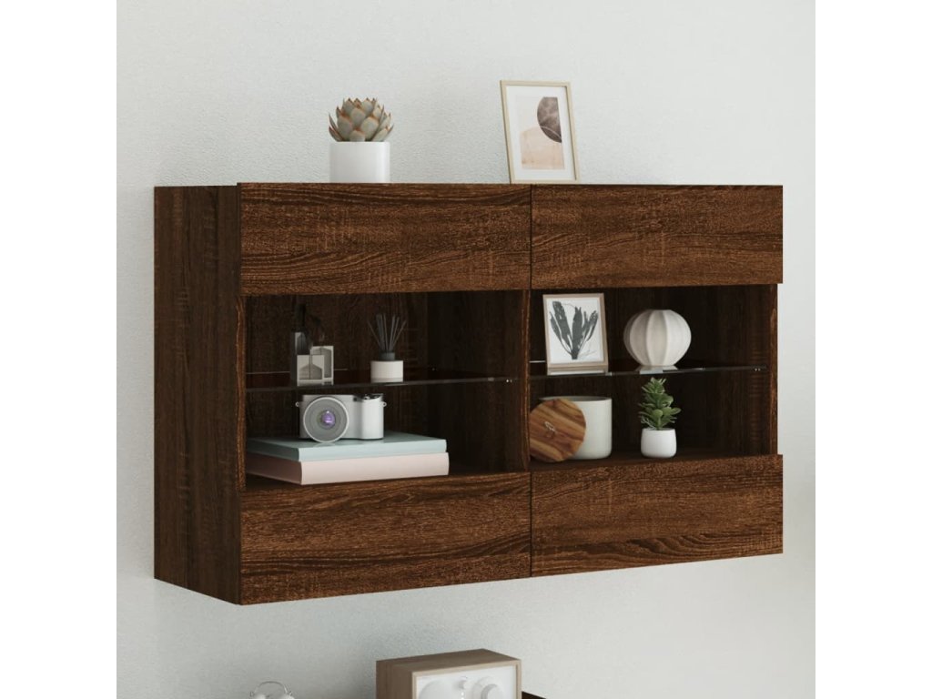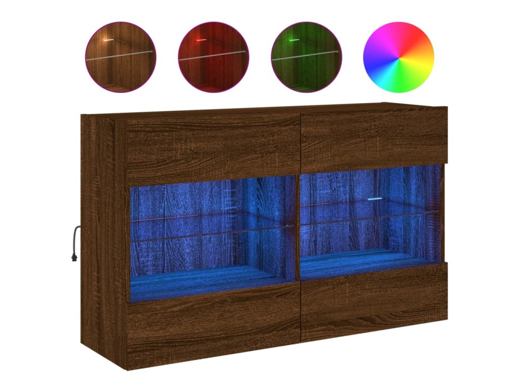 Multidom TV nástenná skrinka s LED svetlami hnedý dub 98,5x30x60,5 cm