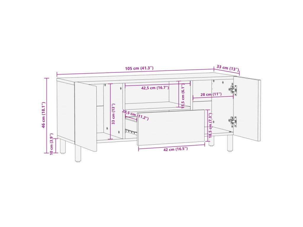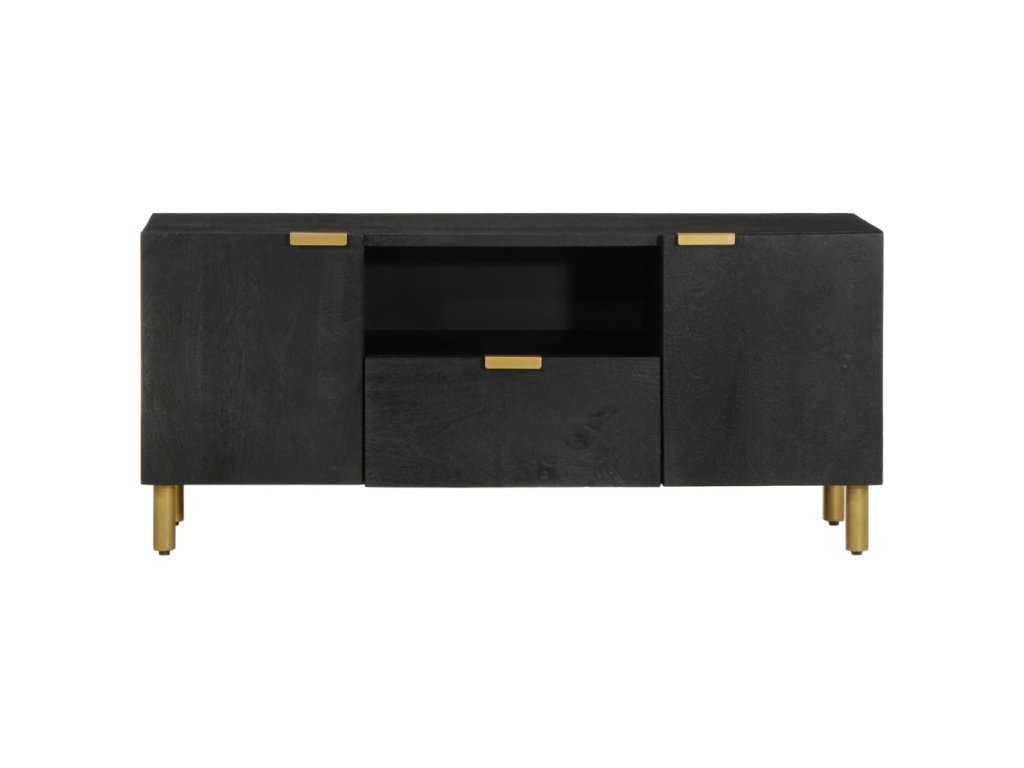 - Kovové úchytky: Táto skrinka pod TV je vybavená kovovými držadlami pre ľahký prístup a dodáva jej dizajnu štýlový priemyselný štýl.