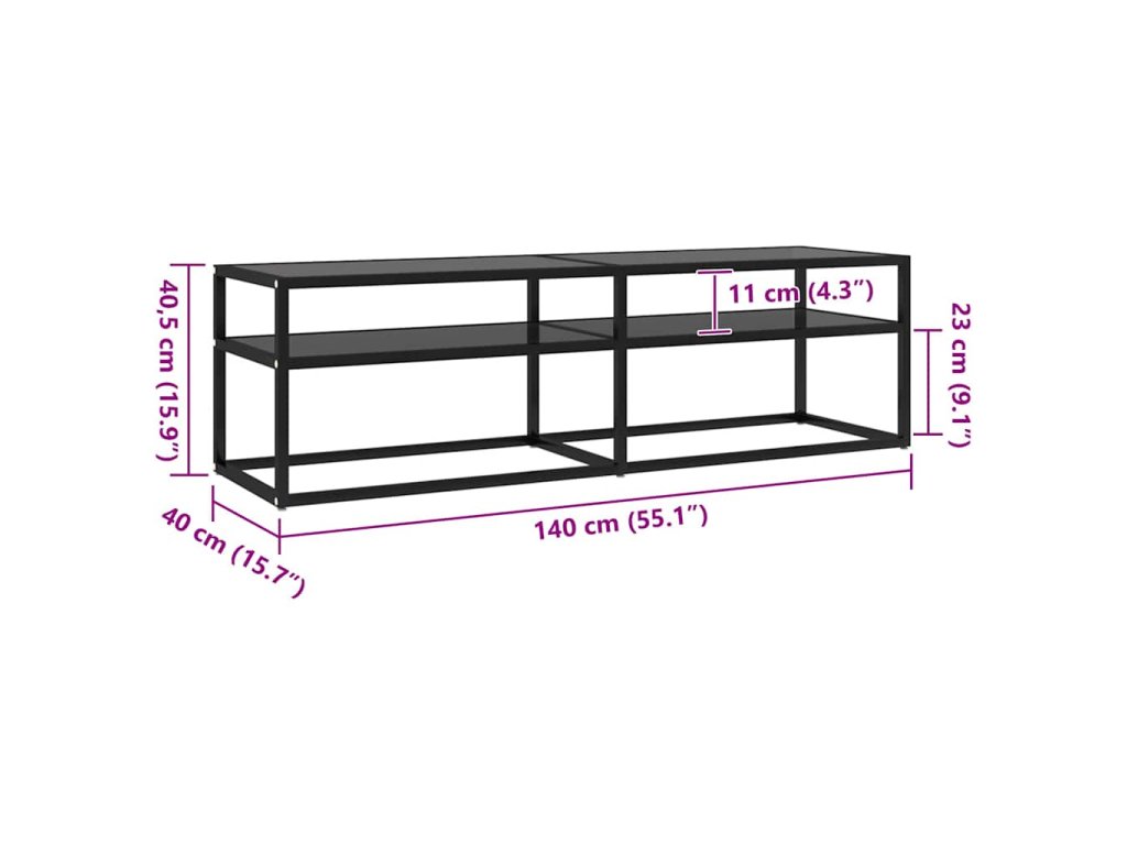Multidom TV skrinka, čierna 140x40x40,5 cm, tvrdené sklo