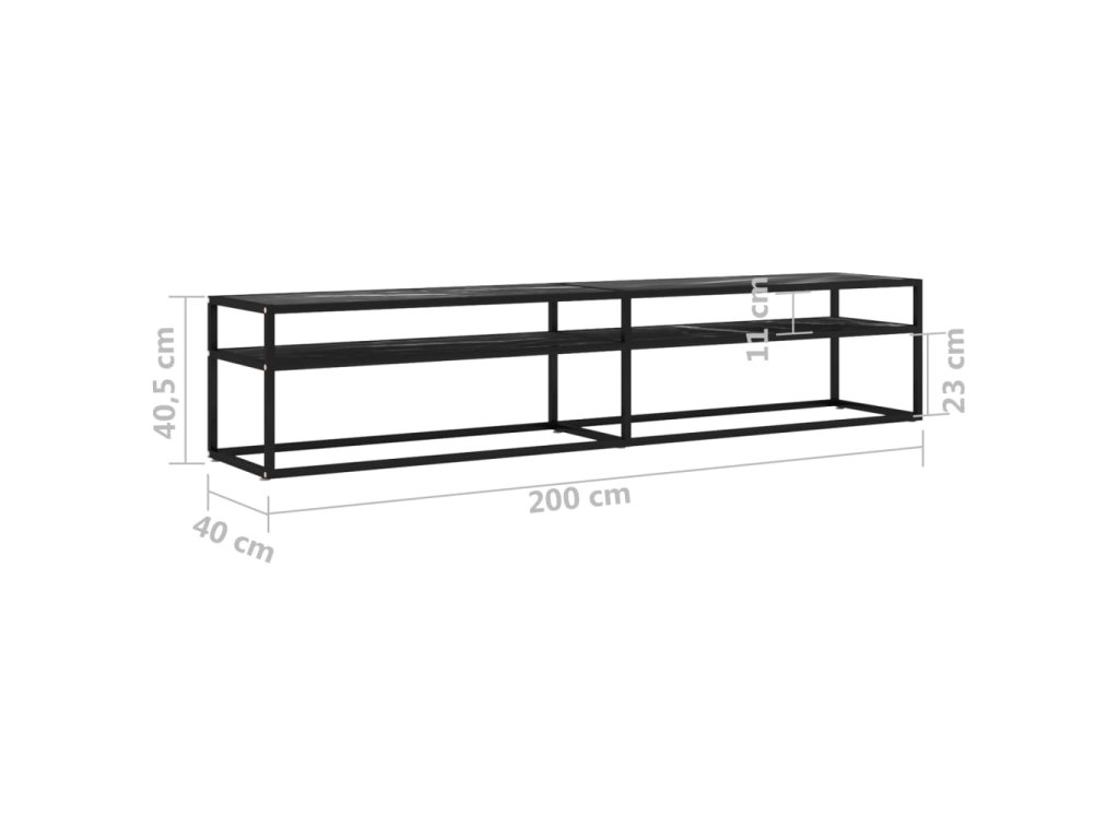 Multidom TV skrinka, čierny mramor 200x40x40,5 cm, tvrdené sklo