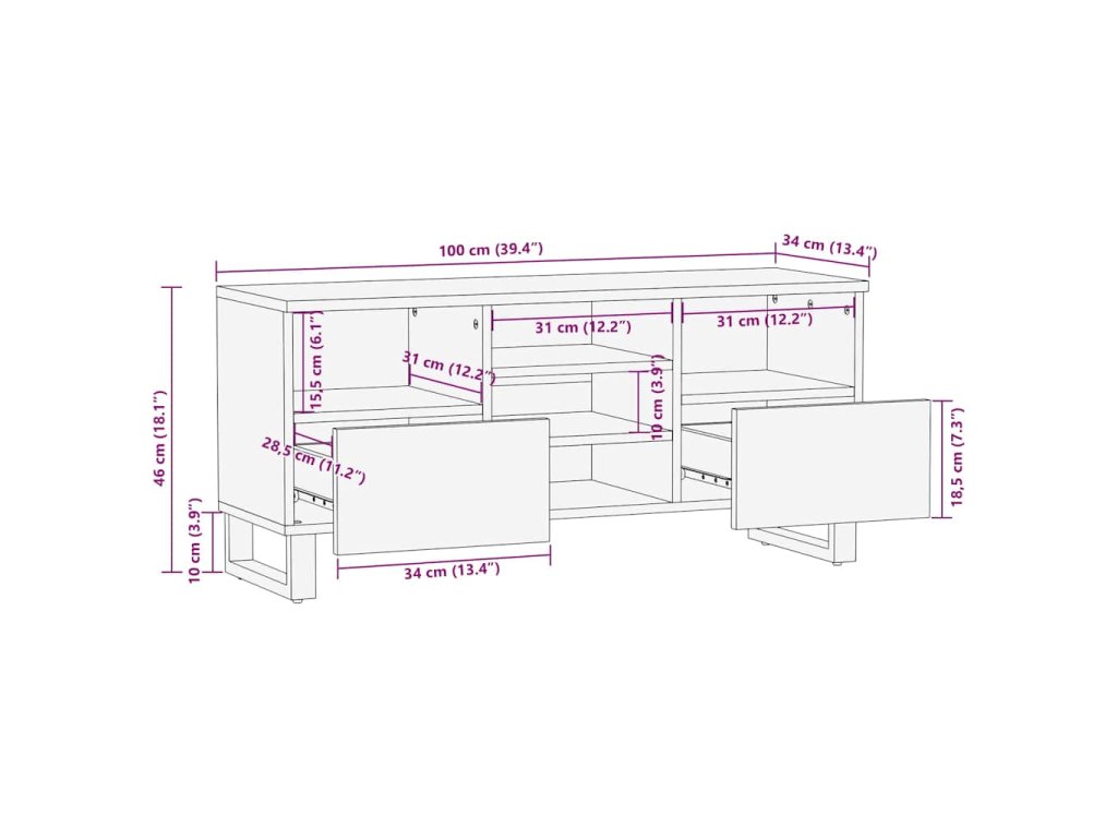 Multidom TV skrinka, hnedá 100x34x46 cm, mangový masív