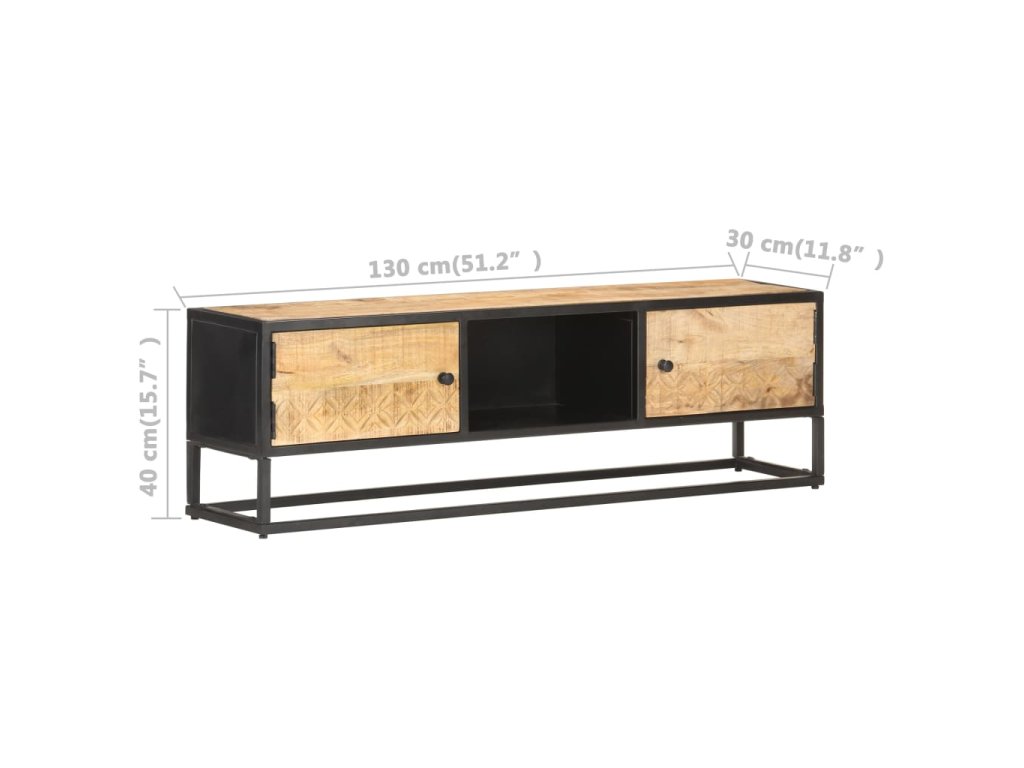 Multidom TV skrinka, vyrezávané dvierka 130x30x40cm,surové mangové drevo