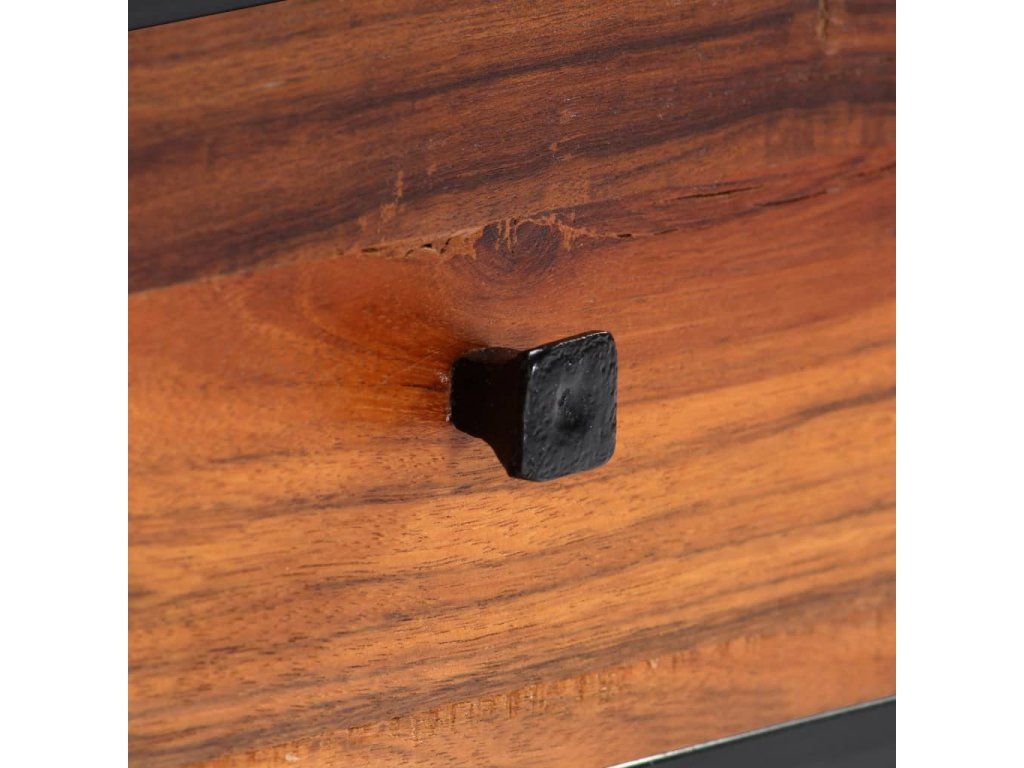 Skrinka na HiFi vežu je vyrobená z mangového a recyklovaného masívu, ktorý pochádza z trámov, podláh a nosníkov zo starých zbúraných stavieb a pozostáva z rôznych typov dreva, ako napríklad borovicového, tíkového, bukového, dubového, cédrového, mangového či akáciového dreva. Recyklované drevo sa preto vyznačuje vlastnosťami týchto typov dreva. Recyklované drevo je staré, zvetrané a usušené, a preto sa nezmršťuje ani neohýba. Každý krok výrobného procesu sa vykonáva s najväčšou starostlivosťou, či už je to leštenie alebo lakovanie. Vďaka vynikajúcemu remeselnému opracovaniu a krásnej textúre dreva je každý kus nábytku výnimočný a trochu odlišný od ostatných. Skrinka na plazmovú televíziu navyše obsahuje 2 dvierka, 2 zásuvky a 1 priečinok, ktoré poskytujú ideálne miesto na odkladanie menších predmetov, aby ste ich mali vždy poruke. Oceľový rám s práškovou povrchovou úpravou dodáva skrinke potrebnú pevnosť a stabilitu. TV skrinka sa jednoducho montuje.