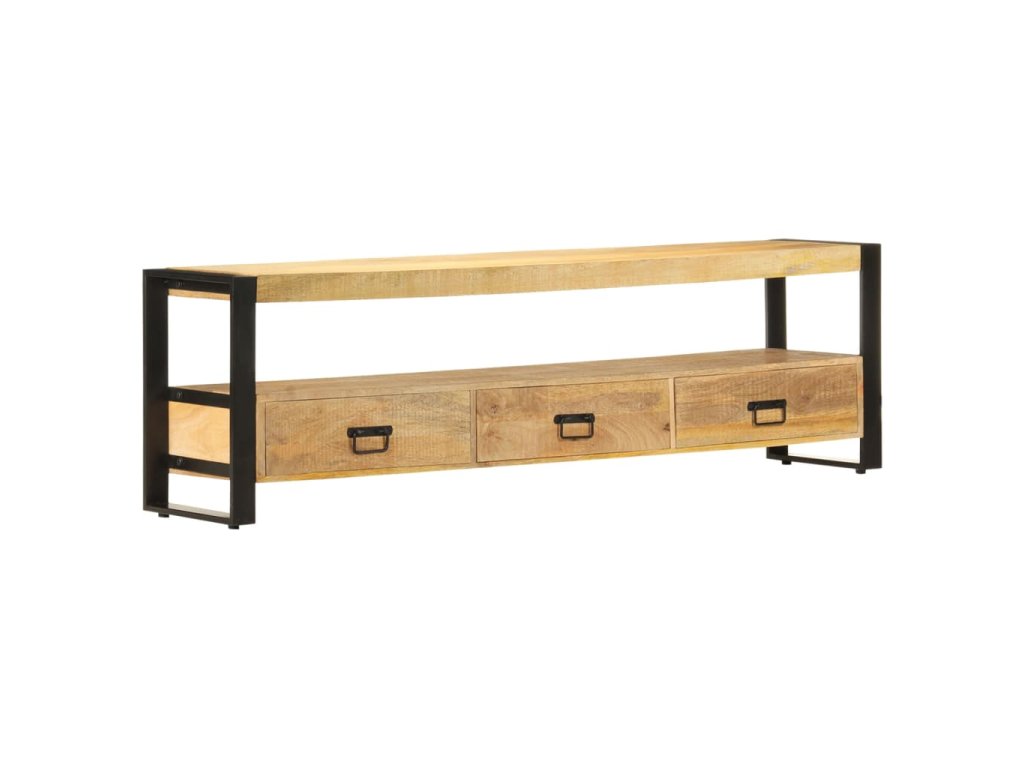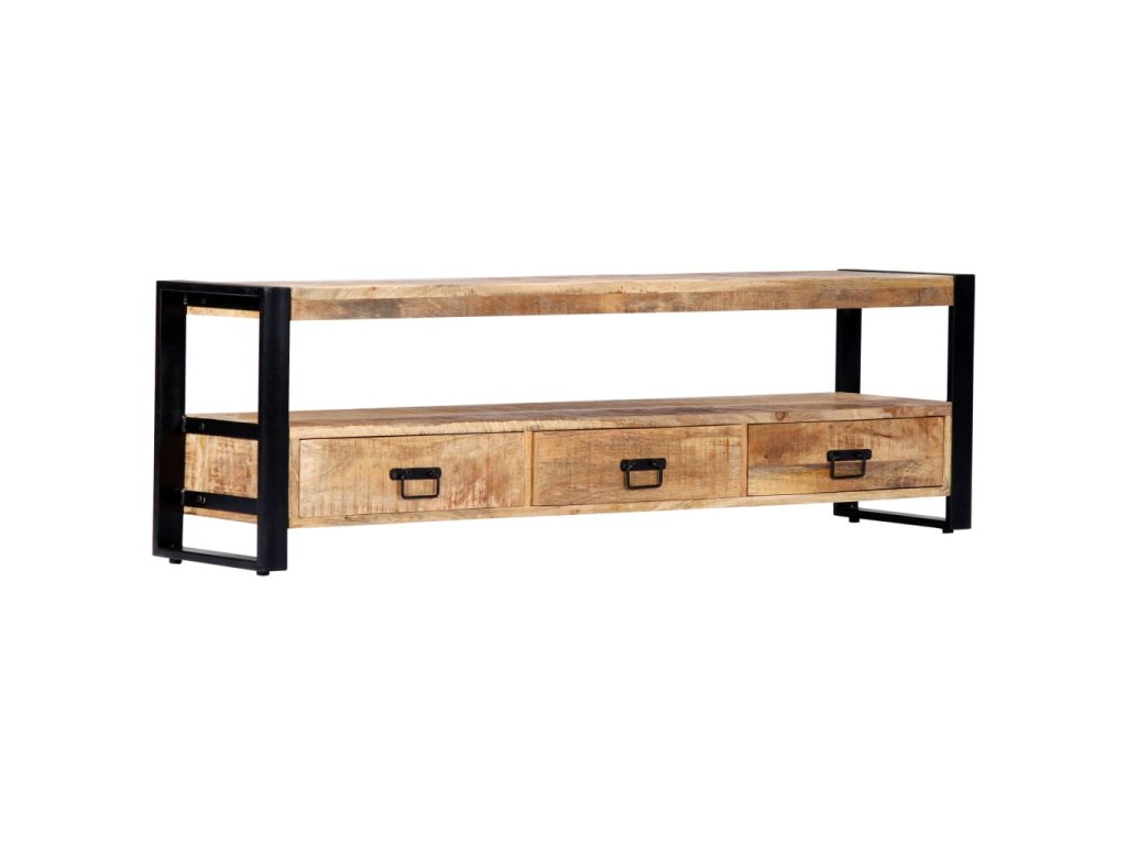 Táto HiFi skrinka je vyrobená z masívneho mangovníkového dreva, tvrdého dreva s hustou štruktúrou. Hrubé mangovníkové drevo sa môže pochváliť nielen hmotnosťou, ale aj odolnosťou voči opotrebovaniu. V dôsledku toho je táto krásne navrhnutá skrinka mimoriadne stabilná, trvácna a pútavá. Stereo skrinka je ručne vyrobená a vďaka peknej štruktúre dreva je každý kus tohto nábytku jedinečný a mierne odlišný od ostatných kusov. Okrem toho oceľový rám s práškovou úpravou prispieva k jej pevnosti. Táto skrinka má 3 zásuvky a 1 priehradku, ktorá poskytuje dostatok priestoru na uloženie vašich multimediálnych zariadení, kníh, topánok, ako aj rôznych ďalších predmetov.