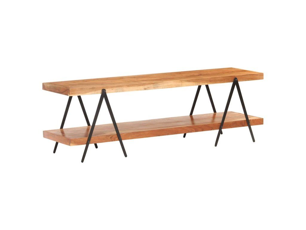 TV stolík je vyrobený z akáciového masívu, tvrdého dreva s bohatou textúrou. Nízka skrinka má krásny dizajn a je stabilná, trvácna a pôsobivá. Vďaka vynikajúcemu remeselnému opracovaniu a krásnej textúre dreva je každý kus nábytku trochu odlišný od ostatných. Skrinka na Hi-Fi vežu má 2 poličky, a tak poskytuje množstvo priestoru na odkladanie multimediálnych zariadení, kníh či iných predmetov. Železný rám s práškovou povrchovou úpravou skrinke navyše dodáva potrebnú stabilitu a zároveň umocňuje jej industriálny vzhľad.