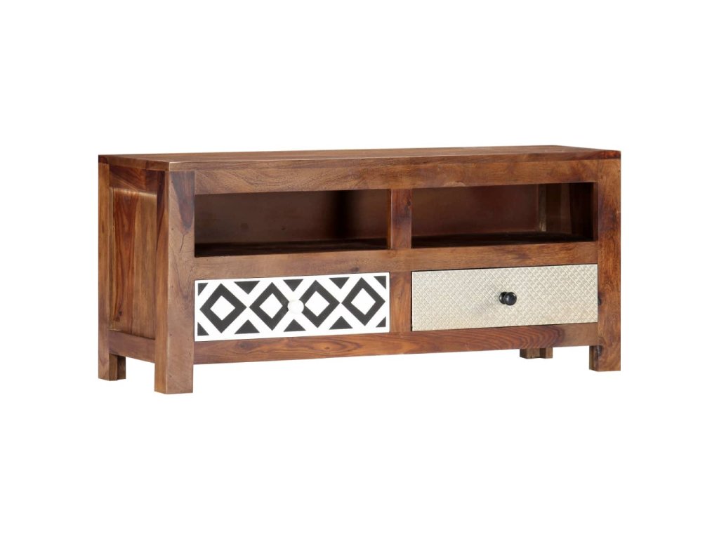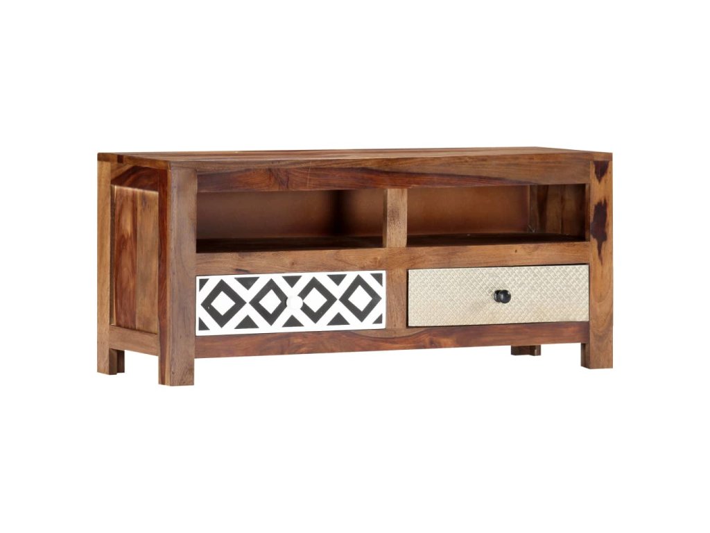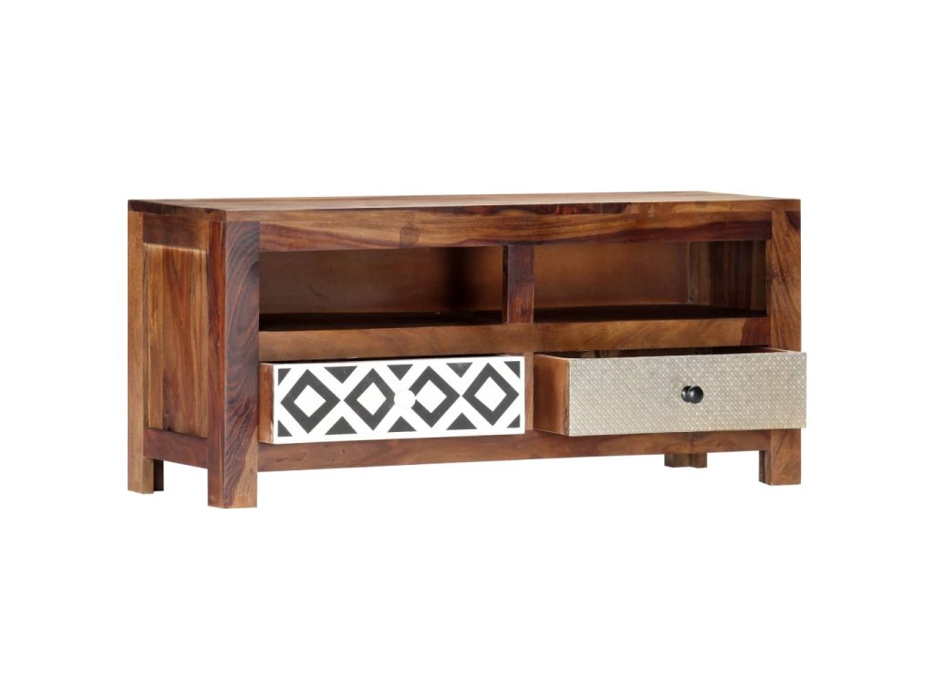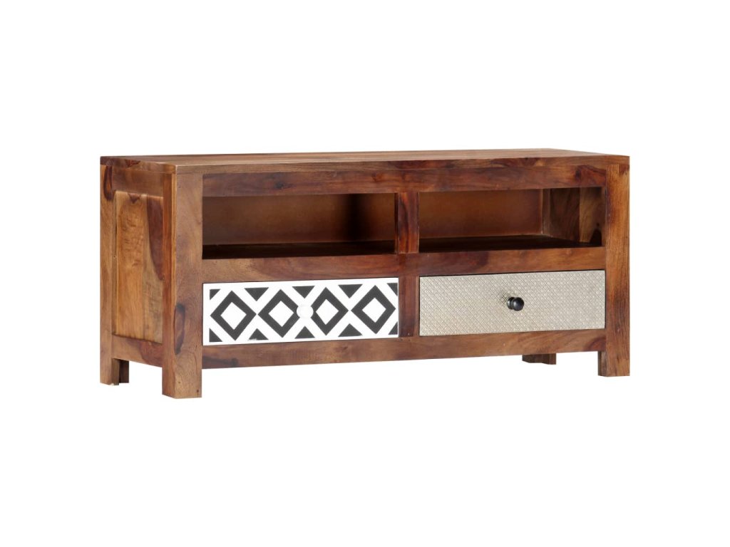 Vneste do svojho interiéru nádych exotického šarmu s touto nádhernou drevenou TV skrinkou! TV skrinka má 2 zásuvky a 2 priečinky, ktoré poskytujú množstvo úložného priestoru, a tak predstavuje praktický a zároveň dekoratívny doplnok do obývačky či do spálne.