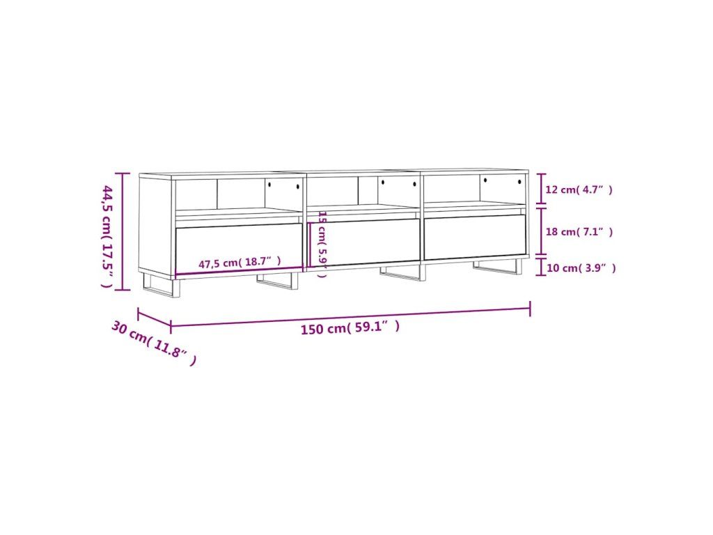 Multidom TV skrinka betónová sivá 150x30x44,5 cm kompozitné drevo