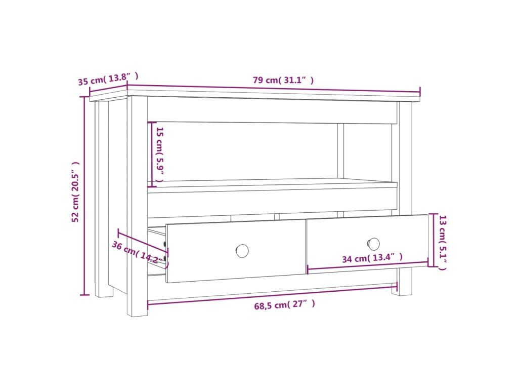 Multidom TV skrinka čierna 79x35x52 cm masívna borovica