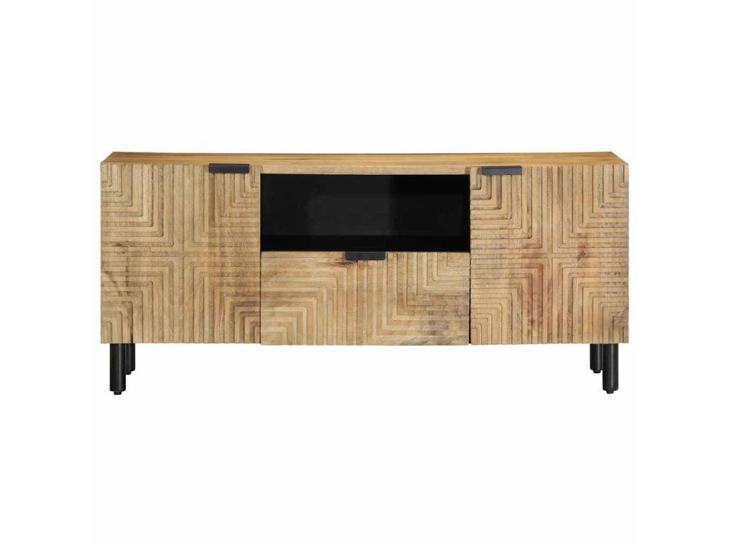- Materiál: Mangová púštna hnedá povrchová úprava s CNC prednou časťou, opracované drevo, kov