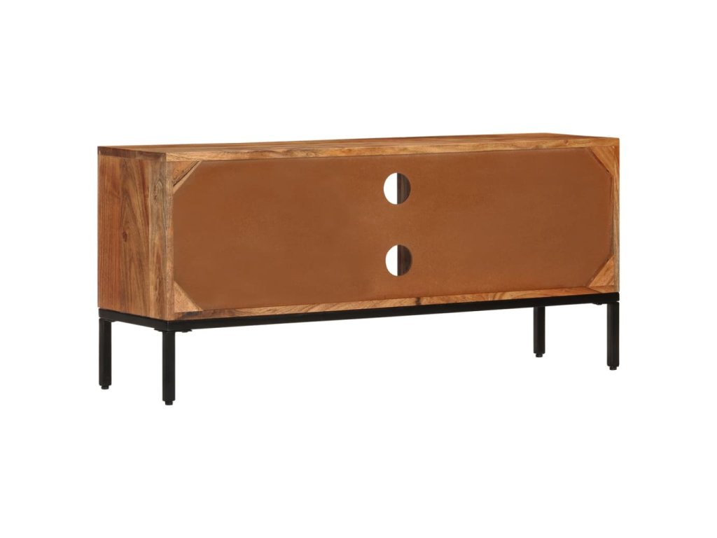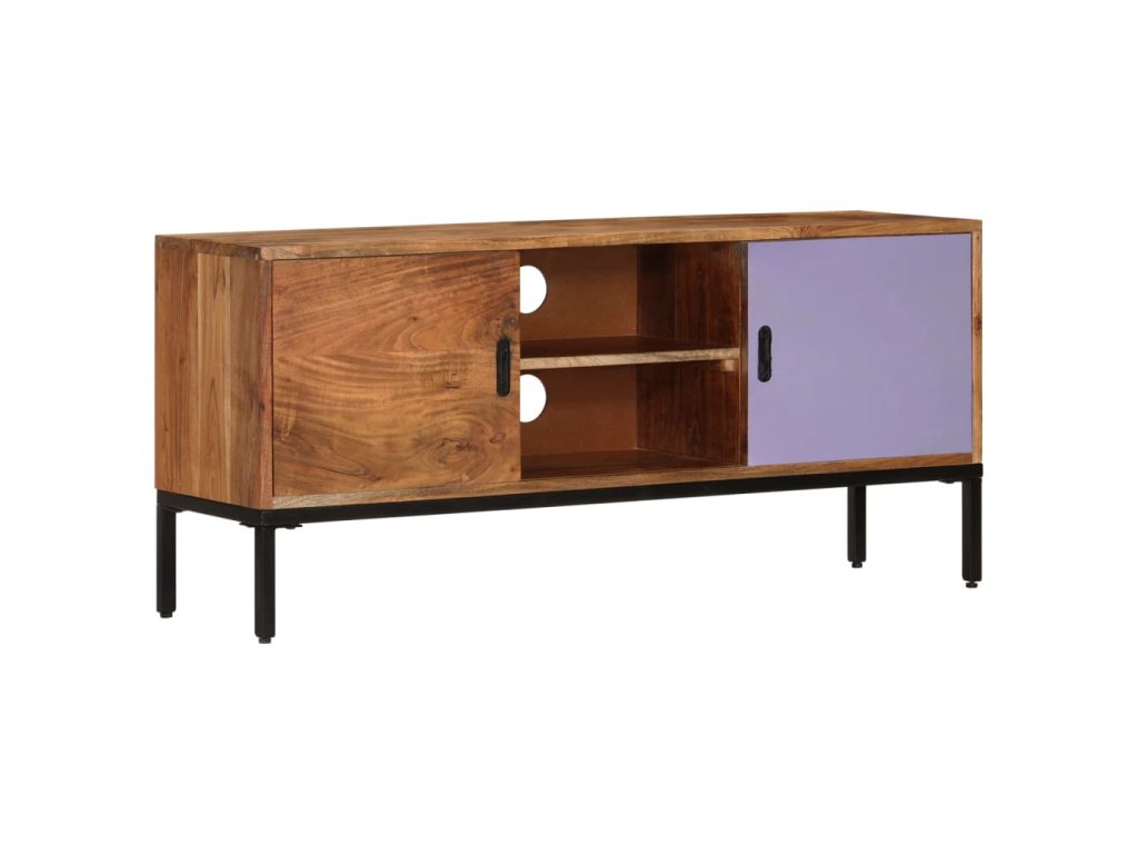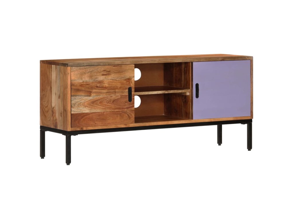 TV jednotka je vyrobená z masívneho akáciového dreva s medovo-hnedým povrchom a je vysoko odolná. Tento TV stolík obsahuje 2 skrinky s dvierkami a 2 priehradky, ktoré poskytujú dostatok úložného priestoru pre vaše multimediálne zariadenia, knihy a rôzne iné predmety. Okrem toho sú na zadnom paneli 2 otvory na usporiadanie káblov a elektronických zariadení. Dá sa ľahko očistiť navlhčenou handričkou.