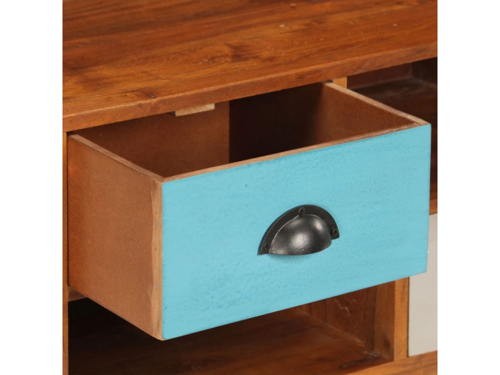 Táto TV skrinka je vyrobená z masívneho akáciového dreva s náterom v tmavej medovej farbe, vďaka ktorému je veľmi stabilná a odolná. Každý krok výrobného procesu sa vykonáva s najvyššou starostlivosťou, či už ide o leštenie, maľovanie a lakovanie. Vďaka remeselnému spracovaniu a krásnej drevenej štruktúre je každý kus nábytku jedinečný a mierne odlišný od ďalšieho kusu. Vďaka 3 zásuvkám a 2 úložným priehradkám môžete jednoducho uložiť svoje digitálne multimediálne zariadenia, hernú konzolu, nosiče médií alebo iné predmety. Montáž je jednoduchá.