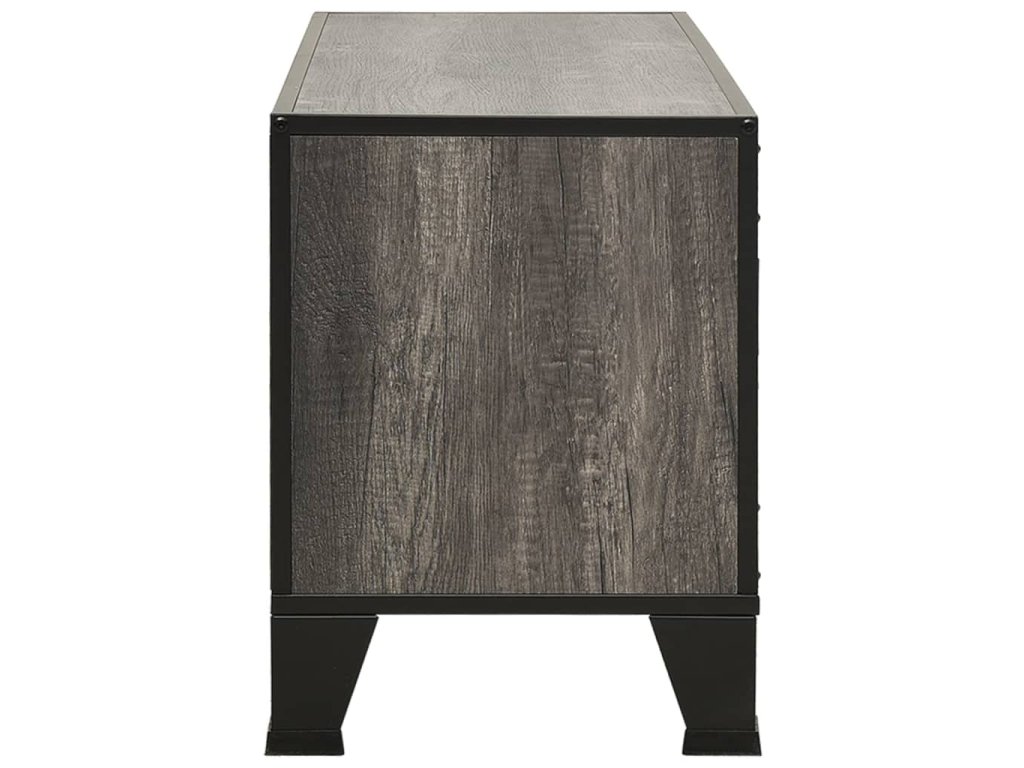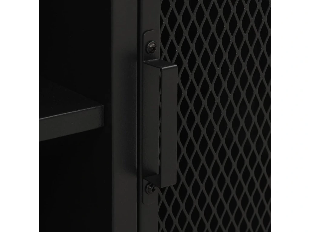 TV skrinka je vyrobená z kovu a MDF, vďaka čomu je veľmi pevná a odolná. Televízny stolík má 2 sieťované dvierka a policu, a poskytujú dostatok úložného priestoru pre DVD, časopisy a ďalšie veci. Vďaka kombinácii kovového kovania pridá táto skrinka do vašej obývačky alebo spálne mestskú industriálnu atmosféru. Okrem toho sú na zadnom paneli 2 otvory na usporiadanie káblov médií a elektronických zariadení. Ľahko sa čistí vlhkou handričkou.