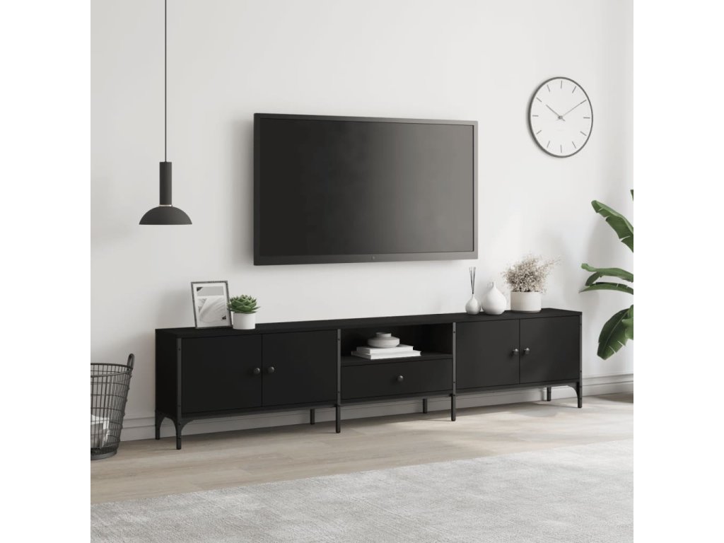 Multidom TV skrinka so zásuvkou čierna 200x25x44 cm kompozitné drevo